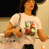 A morena mostrou sua religiosidade ao usar uma camiseta cheia de lantejoulas com a imagem de São Jorge.